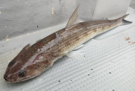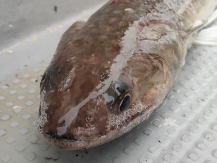 揚がってきた魚は茶色いあのエイリアンのような魚。ESO!