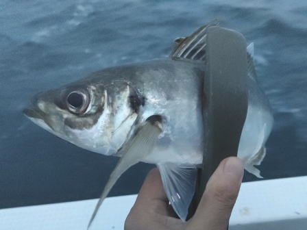 まだ魚探にアジが映っているので落とすとアタリ・・・フッ