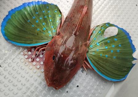 その次、エソっぽい引きだけど揚がってきたのは久しぶりのホウボウ