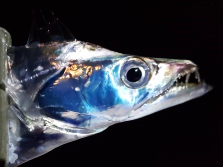浅場に乗っ込んでくる食い気のあるタチウオにしては食いが悪く、入れ食いにはならないけどポツポツとは釣れる。シラガで傷のないのはリリース