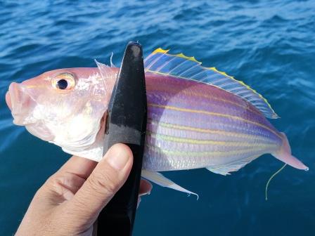しばらくしてアタリがあり小さい魚が掛ったが・・お!シラカワ(シロアマダイ)じゃん。