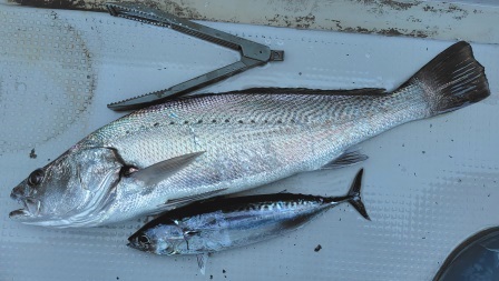 狙いのアジは釣れんかったけど、ニベの強い引きは楽しかったし、ソウダが来ているということは夏の海だね♪