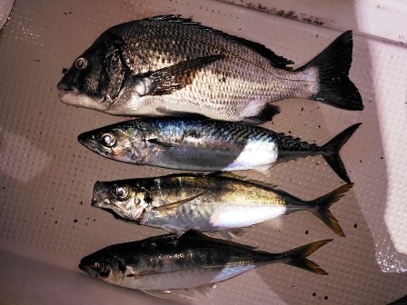 もう1匹の良いサイズのアジを追加して暗くなったので撮影