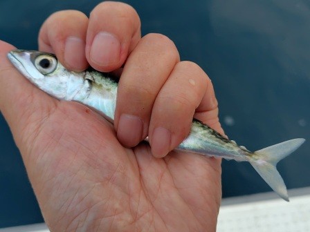 チビサバです。これはポンポン釣れウルメイワシも釣れますが、これを食いに来ている魚を探します。
