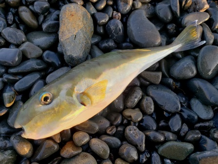 再開し始めてすぐに中層で掛かり、ワカナゴにしては引くけど走らんなと思ったらサバフグでした