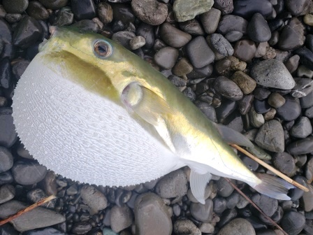 かなり強い引きで疲れながら寄せたらサバフグw