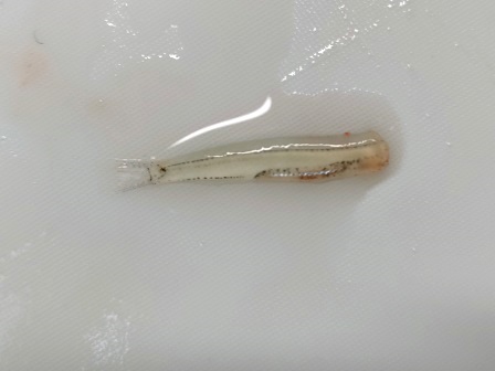 胃は空っぽでしたが、1匹に透明な小魚が入っていました。