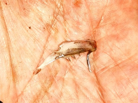 フッキング後のファイト中にテンションが抜けてバレたので回収してみたら顎がフックに付いていた(^^;