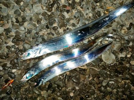 その後、サイズダウンしたタチウオを2匹釣って帰ることにします。