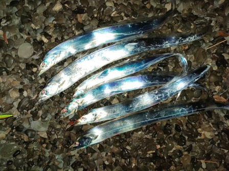 弱い追い風で釣りやすいんですが、昨日よりタチのアタリがかなり少ない。