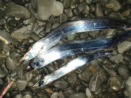 時合いかもしれないと急いでキャストしますがアタリなく、しばらくして良く引くタチウオを1匹追加。