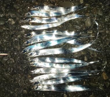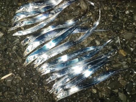 やはり小さいタチウオで指2くらいなので波打ち際ノータッチリリース。これ注意しないと暴れたタチの牙で手をやられる可能性があります。浜に揚げたらもうリリースしないで食いましょう。
