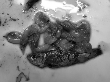 秋のタチウオはやはりサクラエビを食っています。このサクラエビでタチ3匹分