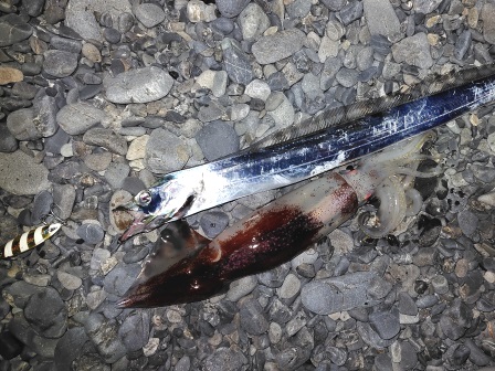 指3ないくらいのタチウオですが、とりあえず釣れてよかった。