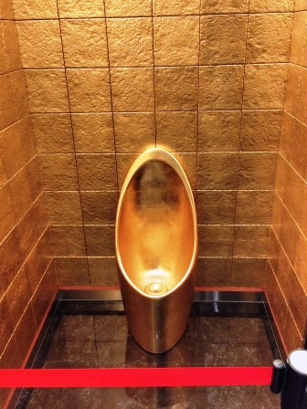 先日、子供を送りに金沢へ行ってきましたが、帰りに寄った「白山ゲートウェイとくみつ TaanTo」ってところのトイレは金ぴかでした。