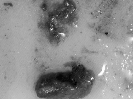 タチっぽくないアタリで回収したフックを見たら、スルメの吸盤にある角質環(棘の輪)が付いてました。