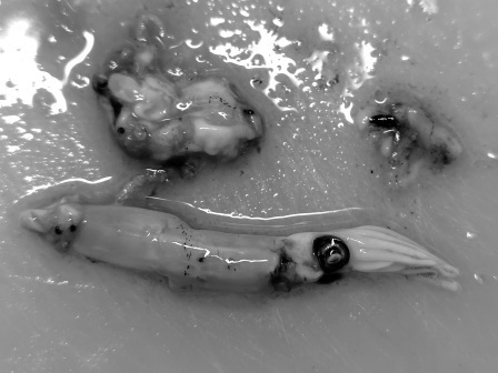 4匹雌、1匹雄で胃の中はあまり入っていなかった