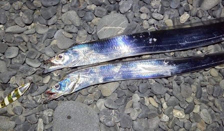 空いているところに歩いていると、タチを釣ってる人が見えます!時合い??